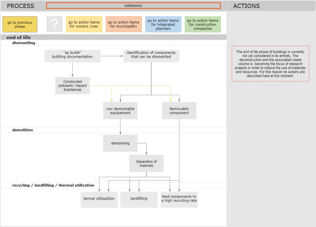correlations between all actions and stakeholders are shown. - Pitfalls and bottlenecks: Pitfalls and bottlenecks that can endanger deadlines, budgets and
